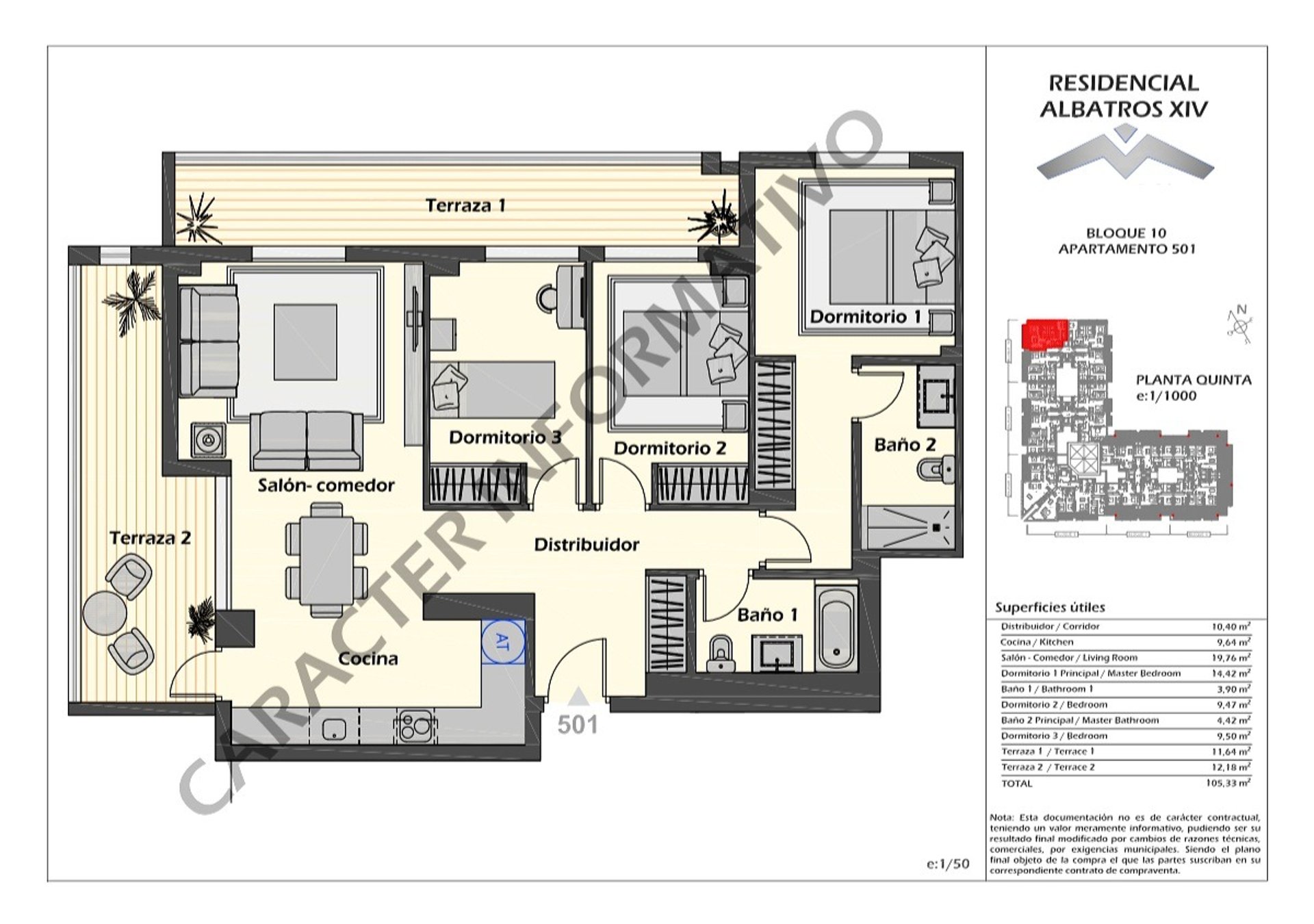 ▪︎ Apto. 515 ático con Solárium con 2 dormitorios y 2 baños, Norte.Precio : 570.000€