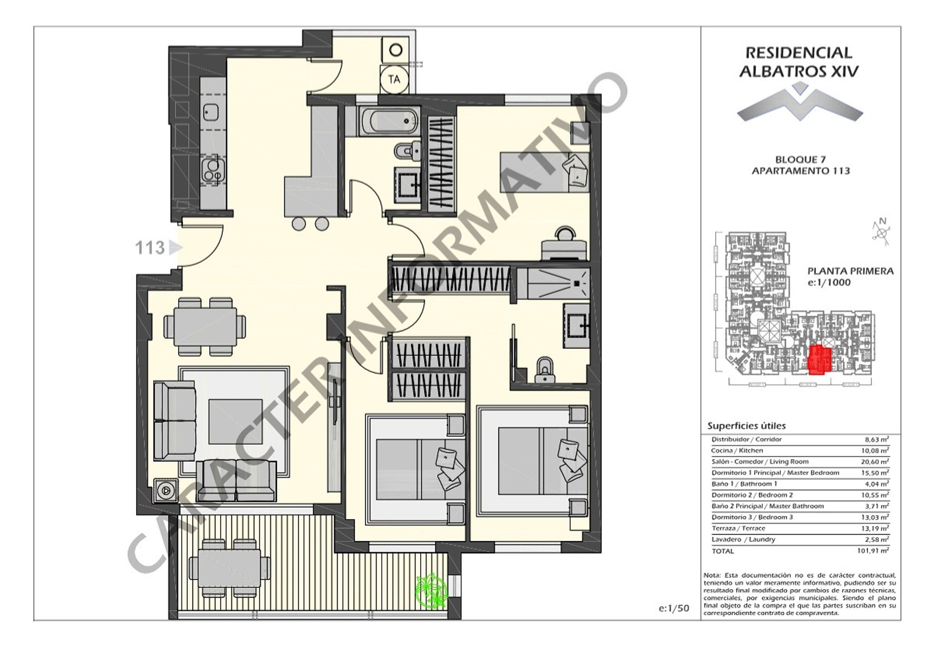 ▪︎ Apto. 117 con 3 dormitorios y 2 baños, Norte. Precio : 435.000€